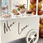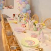 Naambordje aan tipi, candybar, gezellig leeshoekje, zoetigheden (taart, koekjes, muffins, donuts, popcicles, cakecicles,...), ballondecoratie,...